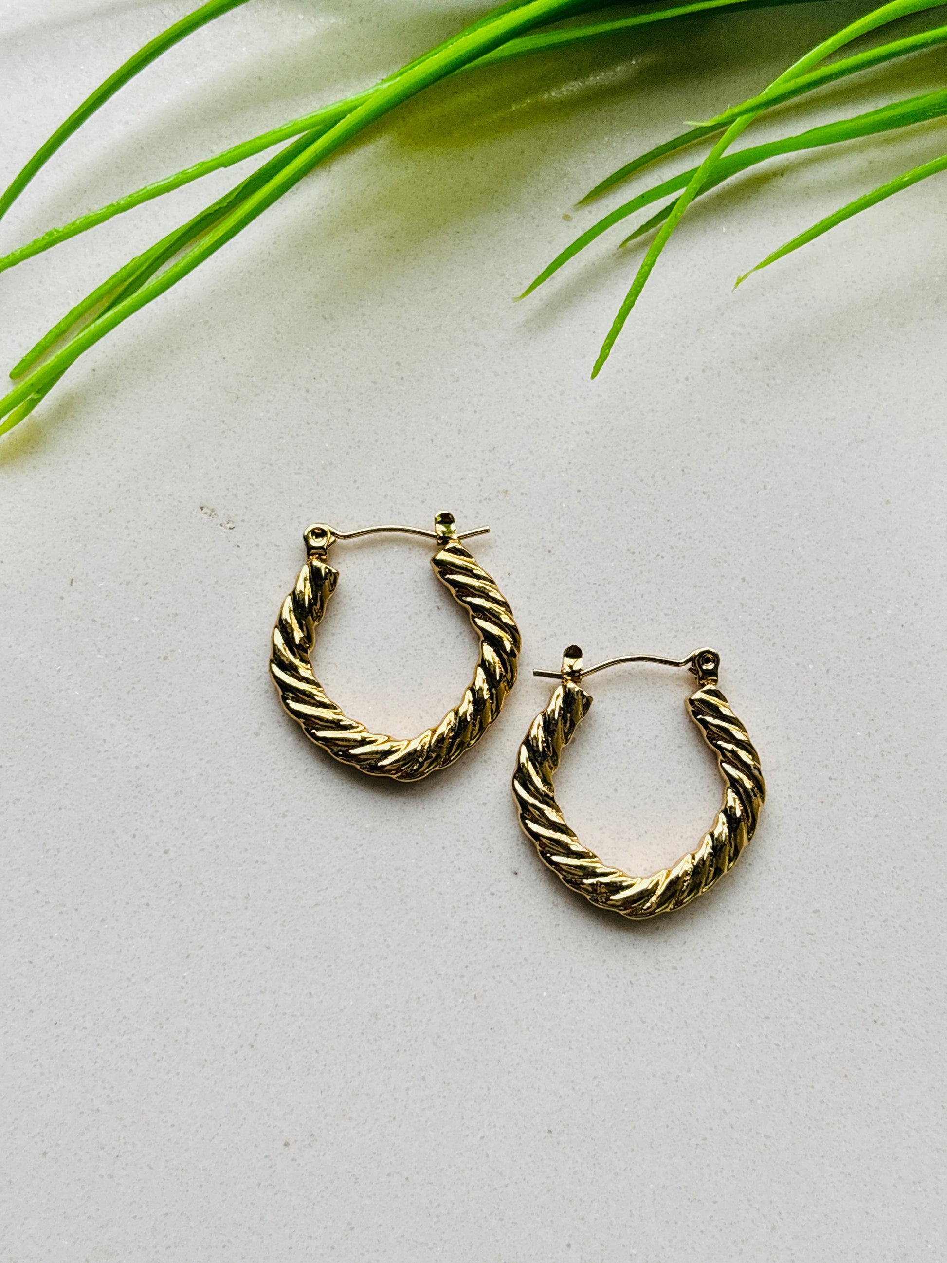 Twist-Texture Glossy Gold Hoop Earrings